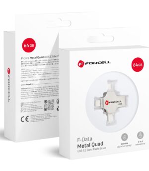 FORCELL F-DATA pendrive Metal Quad 64GB USB3.2 Gen 1 (USB A / Type C / Lightning / Micro USB) silver