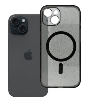 Case for iPhone 15 Clear Mag Cover (STR / CAMERA PROTECTION) compatible with MagSafe black glitter