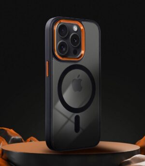 COLOR EDGE MAG COVER case compatible with MagSafe for IPHONE 15 black gold