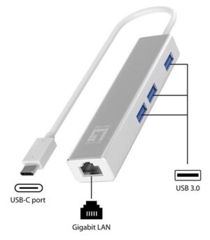 LevelOne Adapter USB-C -> GBit-LAN + USB3.0-Hub