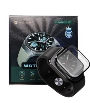 Tempered glass with high class water resistance for the smartwatch. It has glue on the entire surface.