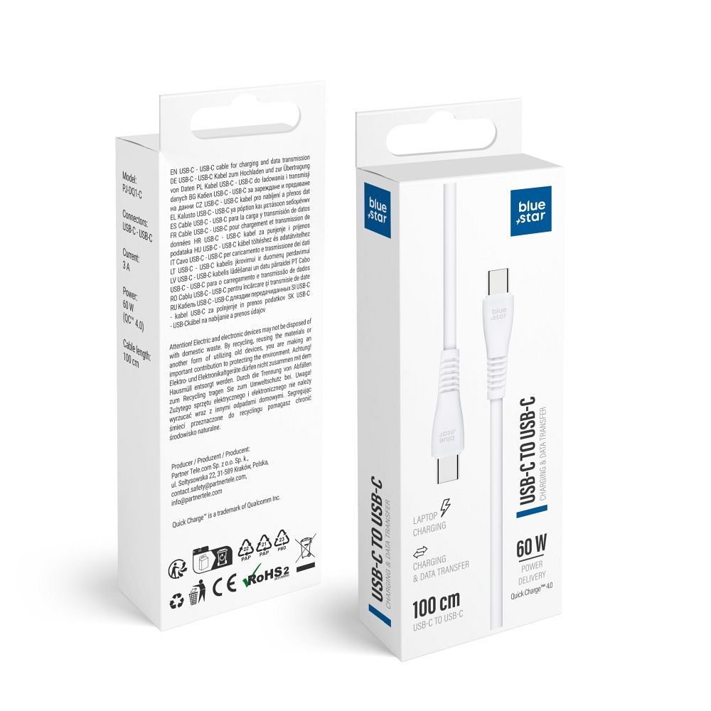 Cable USB C to USB C Blue Star 3A 60W QC4.0 1 m PJ-DQ1-C white