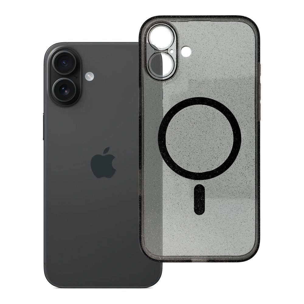 CLEAR MAG COVER case with camera protection compatible with MagSafe for IPHONE 16 Plus black glitter