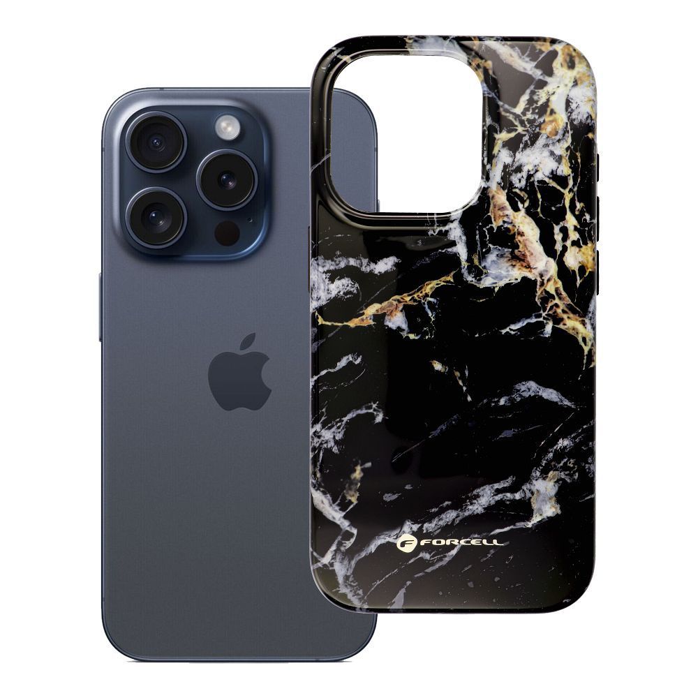 FORCELL F-PROTECT Mirage, Military Drop-Tested case compatible with MagSafe for IPHONE 15 PRO black marble