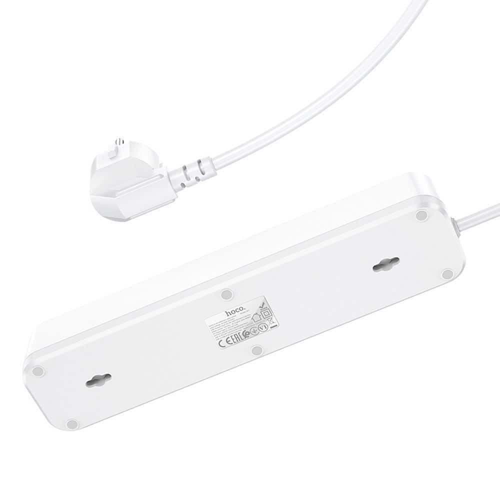 HOCO power strip 4-bit extension cable socket + 2 x USB A + Type C PD QC 3A 20W NS1 white