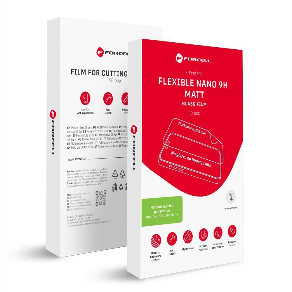 Hybrid nano glass film for cutting machine 2nd and 3rd gen. Forcell F-Protect Flexible NANO 9H MATT 0,38mm 196 x 125 mm 10 pcs