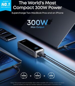 The powerbank is equipped with one USB-C port and two USB-A ports, which allows you to charge three devices simultaneously, making it the ideal companion for people who need a reliable power source while traveling or during everyday use.