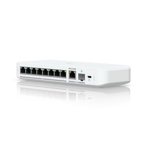 Ubiquiti Switch UniFi 8xRJ45 2.5GBit Compact (incl. NT) Powered by 802.3af/at PoE or USB Type C, Fanless